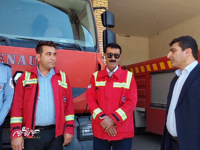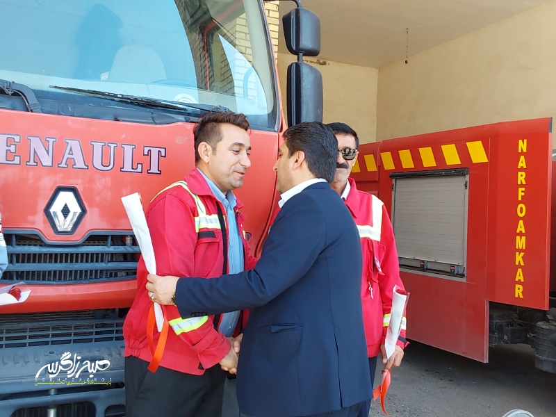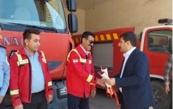 تقوی در پایان همراه با شهردار لنده با اهدای شاخهای گل و لوح تقدیر از زحمات و تلاشهای آتشنشانان این شهر تقدیر کردند.