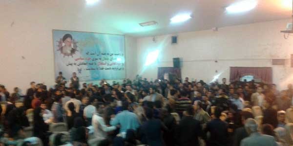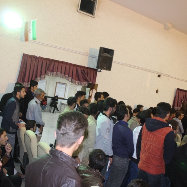 جلسه در حالی شروع شد که جا برای نشستن تعداد زیادی از دانشجویان نبود.و در کنار دیوارهای سالت=ن و وسط سالن ایستاده نظاره گر جلسه بودند.