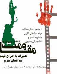 در این برنامه مردمی که ساعت 20 در منزل این شهید برگزار می شود، یکی از فیلم های جشنواره مردمی و بین المللی عمار با موضوع مدافعان حرم، به نمایش عموم گذاشته می شود.