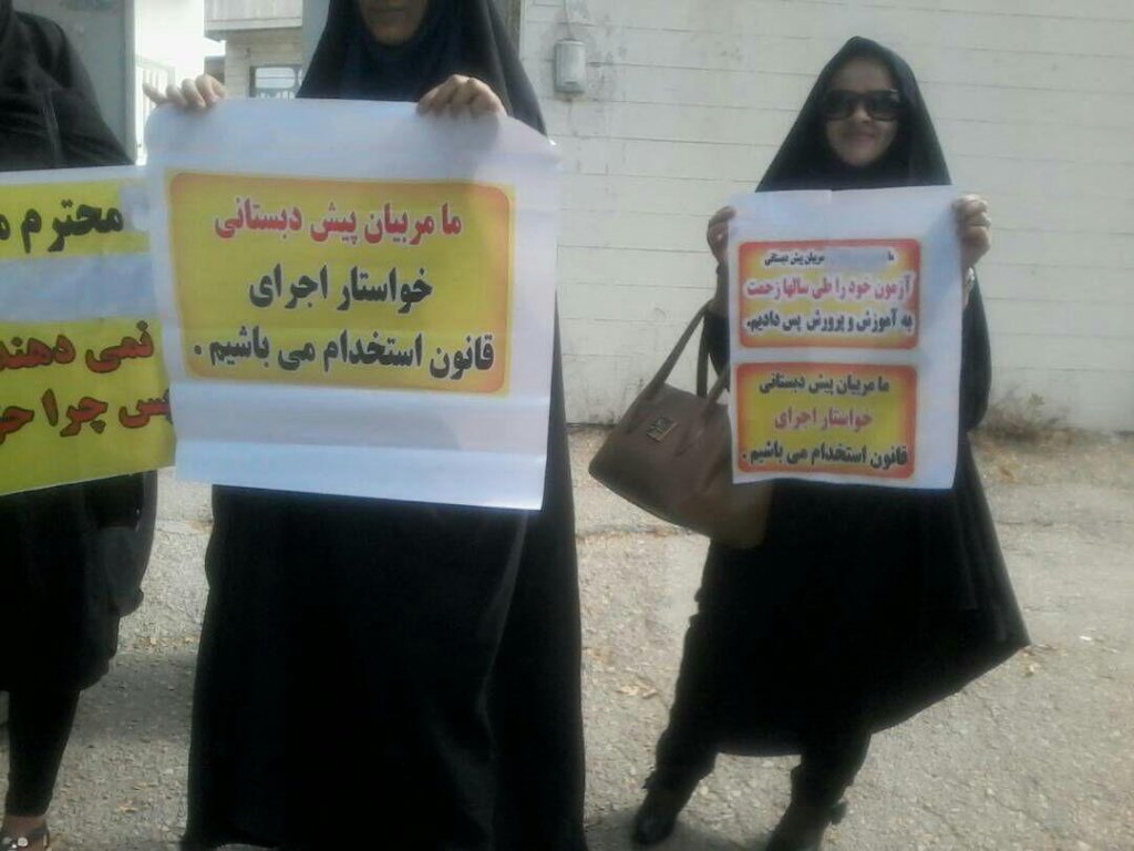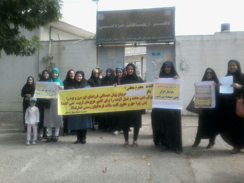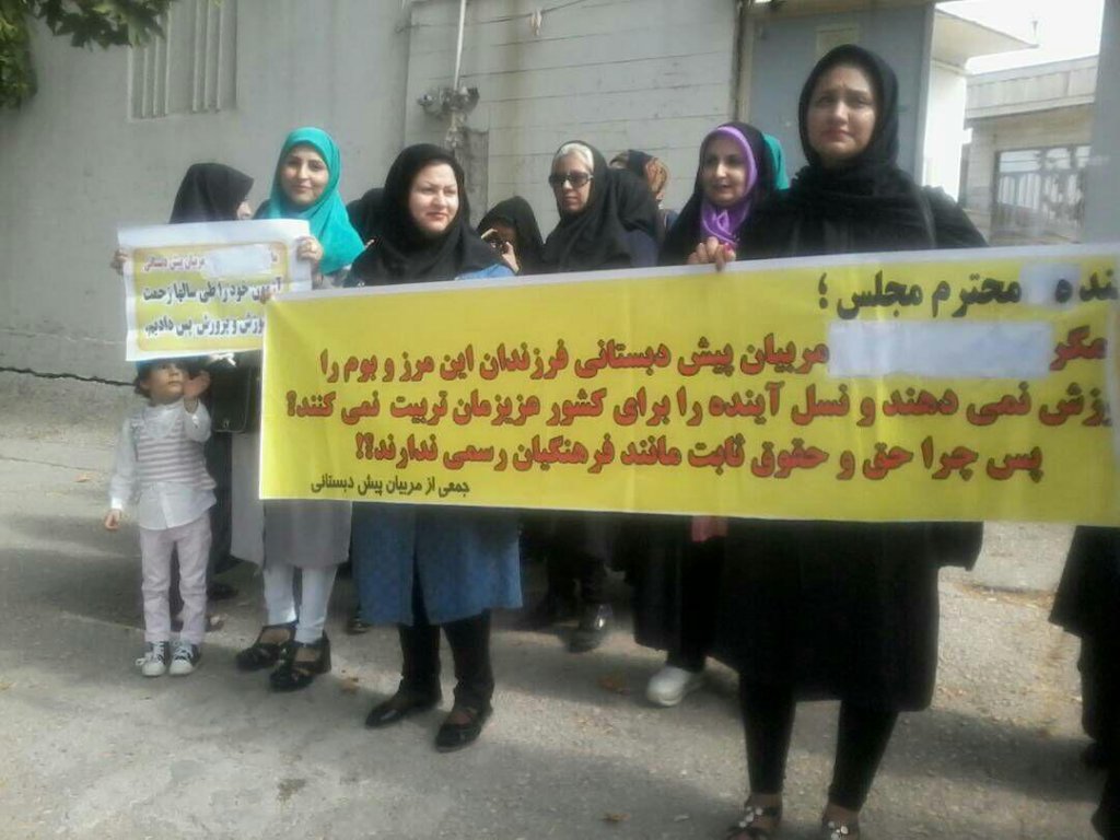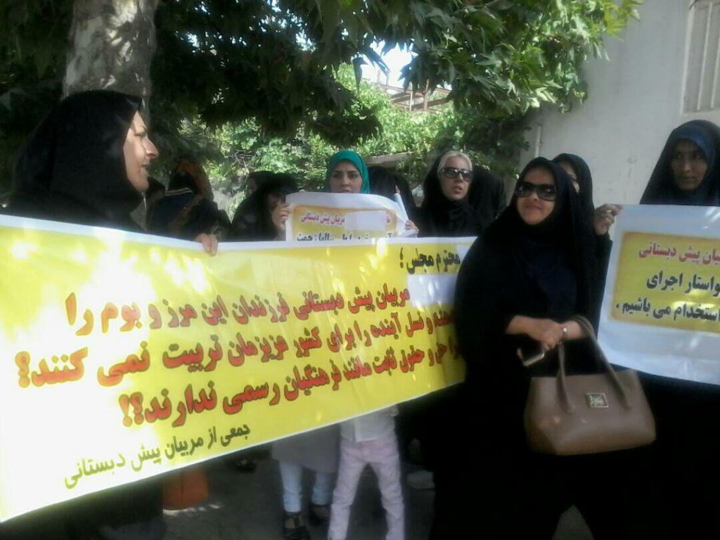 تجمع اول این افراد مقابل مجلس شورای اسلامی در تهران به همراه مربیان پیش دبستانی شهر های تهران، قرچک و ورامین بوده است.