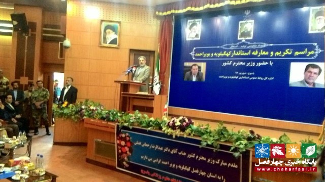 وی یادآور شد: مشکل فعلی کشور توسعه بیکاری، صادرات است رهبر انقلاب هدایت گر اصلی ما هستند و ما به عنوان دولت موظف هستیم به توصیه های ایشان عمل کنیم از طرفی مشکل دیگر بحث تحریم است ما باید مشکل این ریشه ای را حل کنیم که بر اساس اقتصاد مقاومتی برطرف می شود پس استاندار بابد توسعه گرا باشد. مردم کهگبلوبه و بویراحمد وقتی می توانند در حوزه اقصاد موفق باشند که جذب سرمایه کنند کشورهای خارجی را دعوت کند.