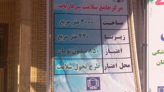 مرکز خدمات جامع سلامت از پروژههای مهم حوزه سرفاریاب بود که با اعتباری قریب به ۸هزار و پانصد میلیون ریال و زیربنای۴هزار متر مربع افتتاح شد.