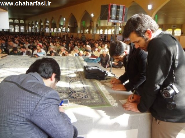 این مراسم نسبت به سال های گذشته با بصیرت و شور بهتری برگزار شده بود به گونه ای که مصلی امام خمینی(ره) شهر یاسوج دیگر ظرفیت حضور افراد را نداشت و عده ای در پشت درب مصلی به صورت ایستاده مراسم را دنبال می کردند.