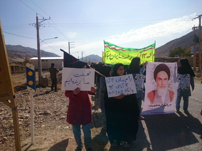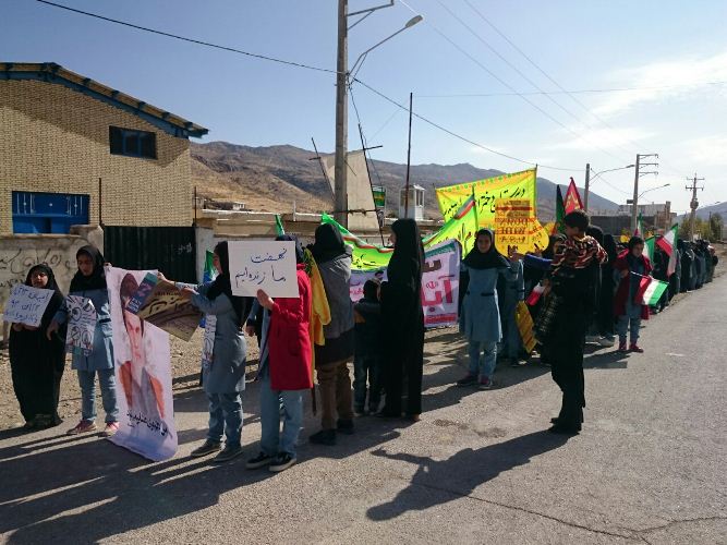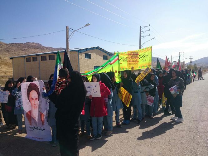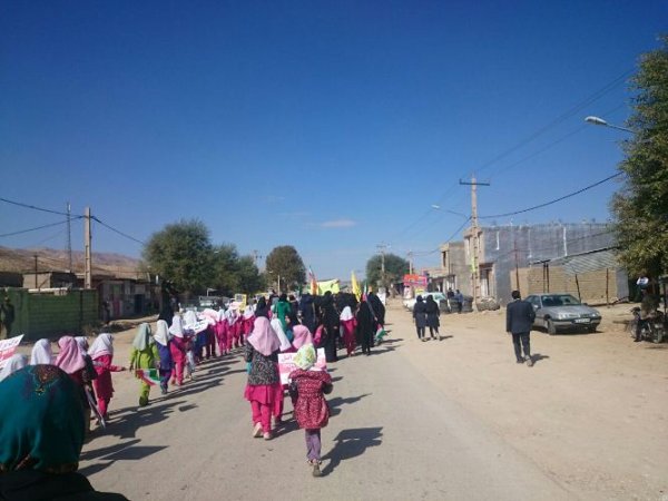 این حرکت شایسته فرهنگی که با استقبال تعداد زیادی از اهالی روستا همراه شد با قرائت فاتحه در آرامگاه شهیدان ۸سال دفاع مقدس آغاز شد و دانش آموزان و بسیجیان حاضر در این راهپیمایی رخدادهای 13 آبان ماه را با طنين اندازشدن شعار مرگ بر آمريکا و مرگ بر اسرائيل گرامی داشتند.