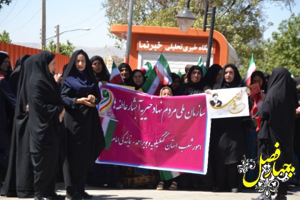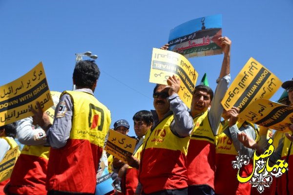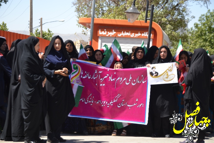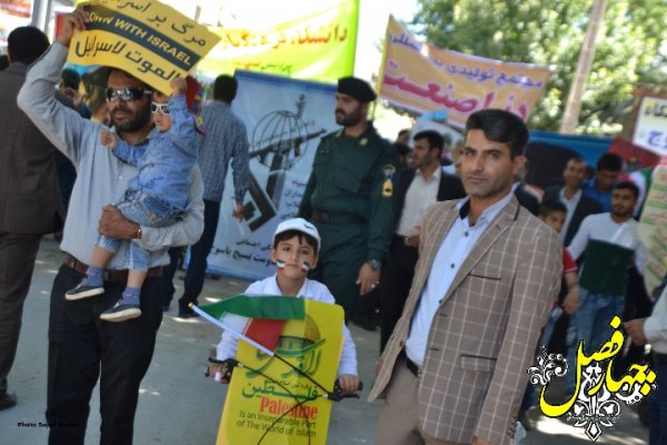 عشایر کهگیلویه وبویراحمد در طول مسیر تصاویر امام، رهبری و همچنین پلاکارد نوشته هایی در حمایت از مردم مظلوم فلسطین حمل می کردند، خواهان پایان اشغالگری در سرزمین اسلامی فلسطین شدند.