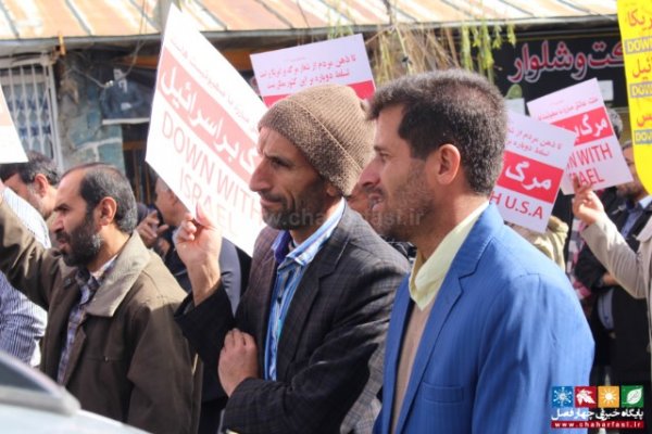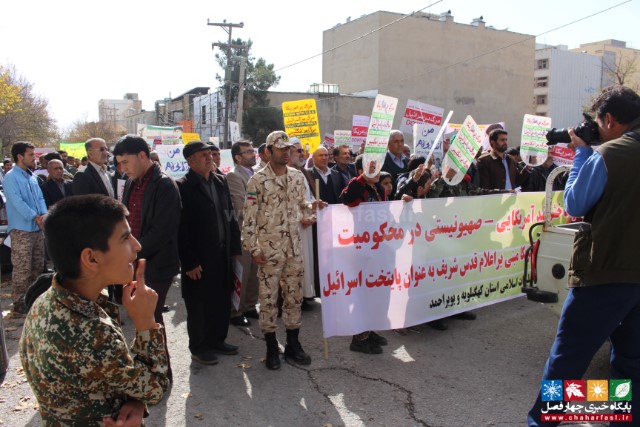 همزمان با سراسر کشور و در محکومیت و اعتراض به اظهارات و تصمیم روز گذشته دونالد ترامپ رئیس جمهور آمریکا مبنی بر شناسایی قدس به عنوان پایتخت رژیم اشغالگر صهیونیستی، تظاهرات ضد آمریکایی و ضد اسرائیلی در شهر یاسوج نیز برگزار شد.